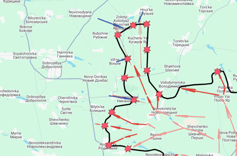 In the north of the breakthrough area, Ukrainians liberated village Zolotyi Kolodyaz, and pushed Russians away from villages Rubizhne, Vesele and Hruzke.