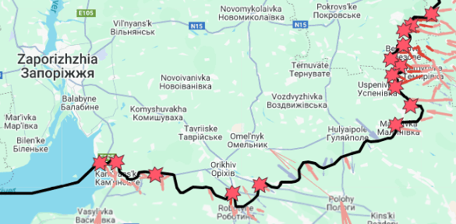A static shot from the Russo-Ukrainian War interactive map. Zaporizhzhya area by the afternoon, 24 September 2025. All information on the maps is approximate.