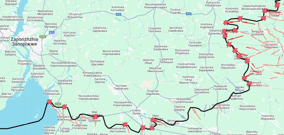 A static shot from the Russo-Ukrainian War interactive map. Zaporizhzhya area by the afternoon, 6 November 2025. All information on the maps is approximate.