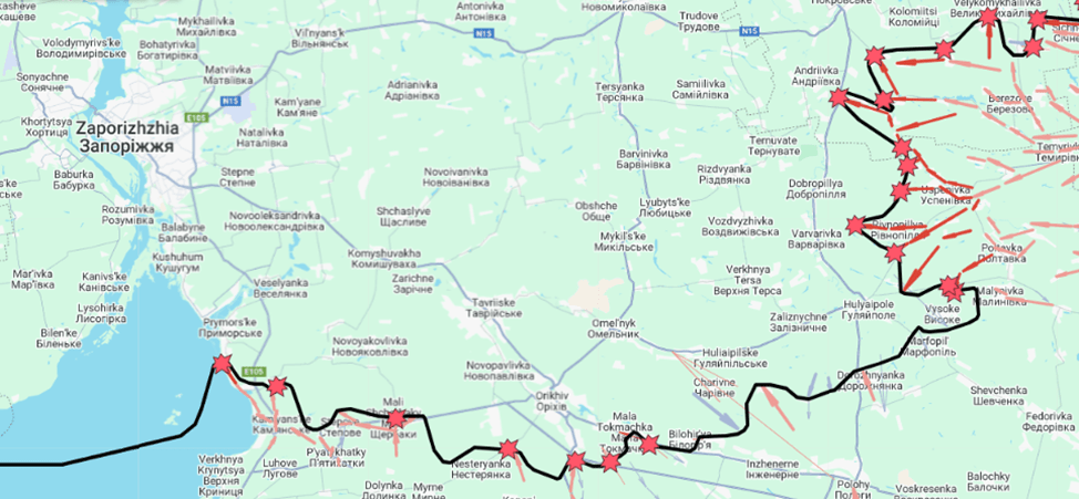 South of Velykomykhailivka, Russians took village Orestopil after advancing from the south.